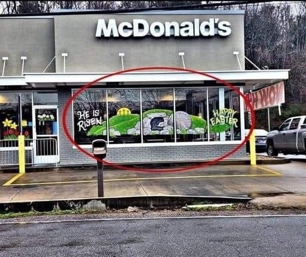 He is Risen!!! Happy Easter!!! Multiple McDonald’s in the Middle TN region share this message. While many companies are opting to stay away from holiday-specific