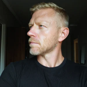 A pensive man wearing a black T-shirt | Source: Midjourney