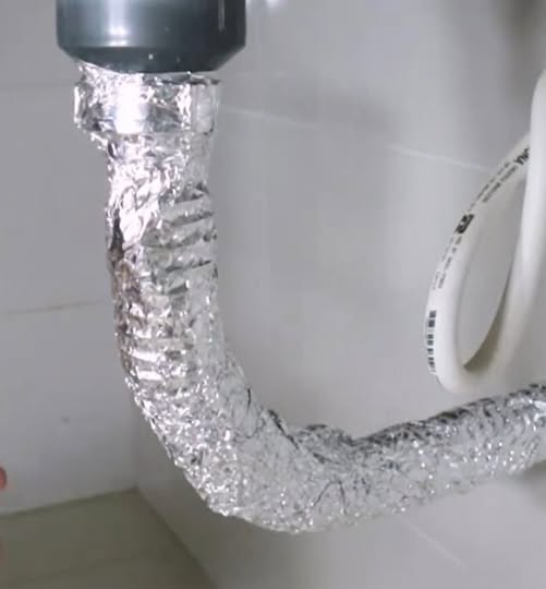 This hint required that the drain pipes from the bathroom be covered with aluminum foil. At first I was skeptical — wrapping foil around your pipes felt more like a poor second grade art project than a real home fix. But as someone who loves a life hack to take the edge off life a bit (and get a little joy out of life), I had to find out.