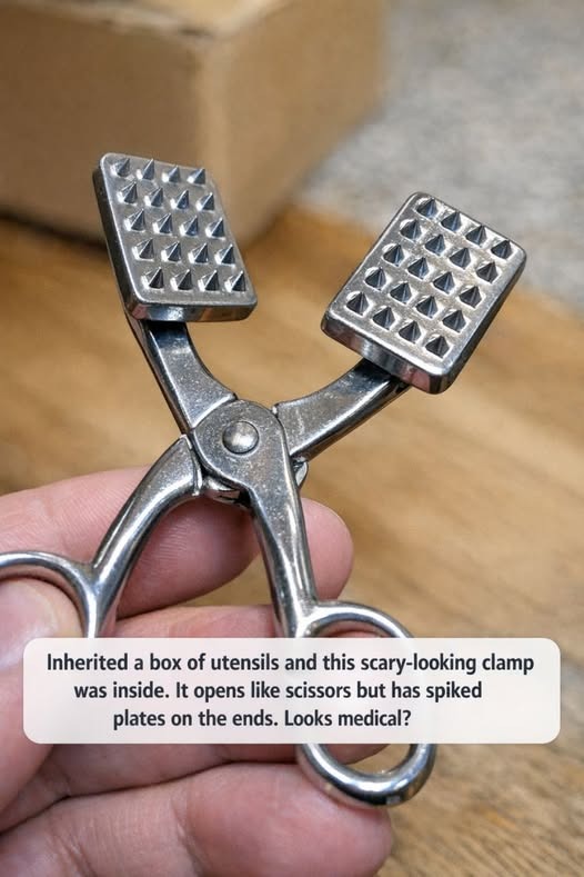Inheriting a box of utensils can be a fascinating journey into the past, a tangible connection to previous generations and their daily lives. Among the familiar spoons, forks, and knives, you may stumble upon curious items that spark a sense of mystery and intrigue. One such item might be a peculiar clamp that, at first glance, seems more at home in a medical setting than a kitchen. Its unusual design, with scissor-like handles and menacing spiked plates, can easily evoke a sense of unease and fascination.