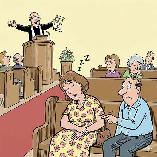When the sermon asked another question, her husband tried to wake her up for the third time.