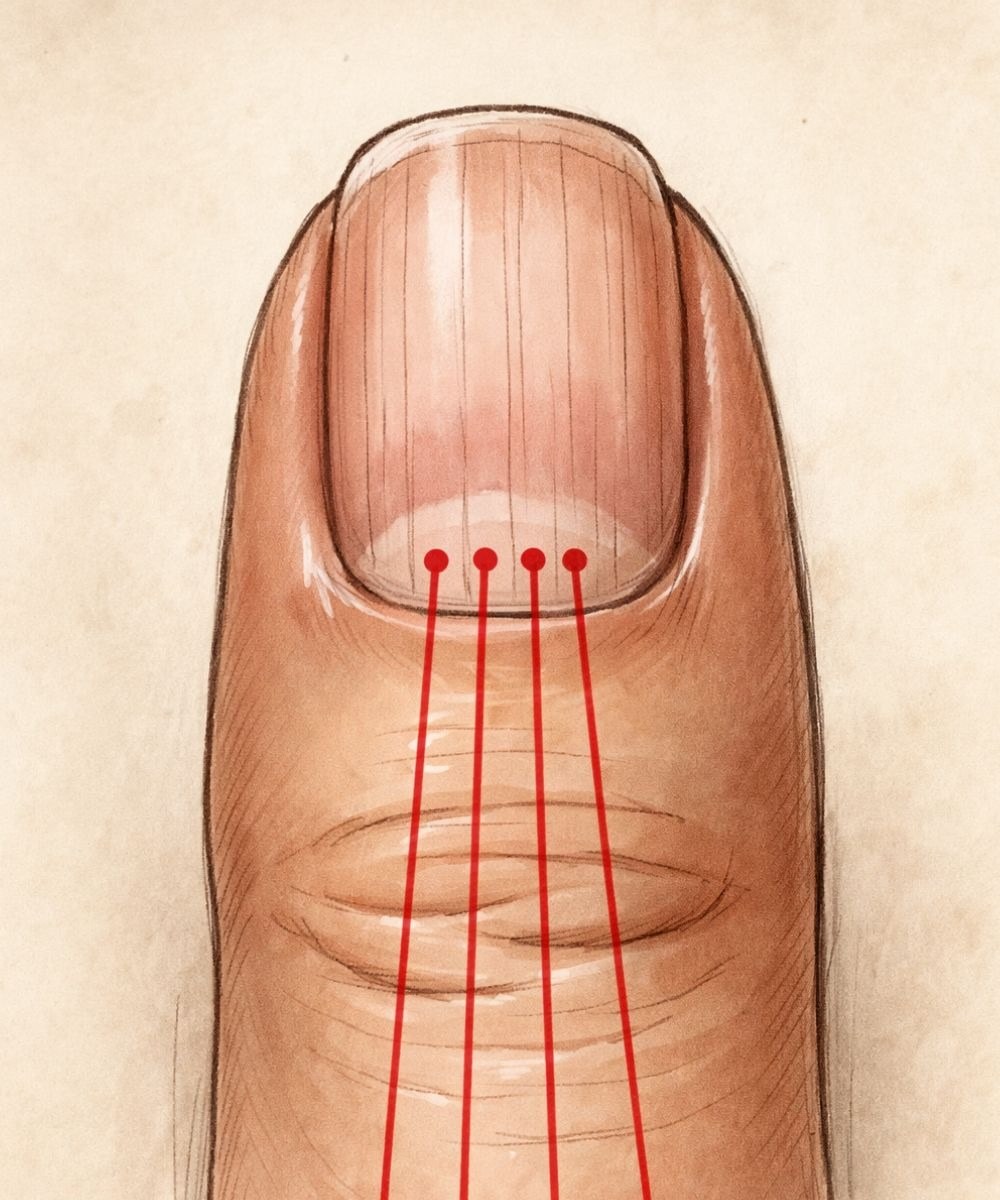At the same time, not all nail changes are purely nutritional. Certain signs should not be ignored. Deep horizontal ridges, sudden discoloration, dark streaks, or pain around the nail can indicate underlying health conditions that go beyond diet. In those cases, it’s important to seek medical evaluation rather than relying solely on nutritional changes.