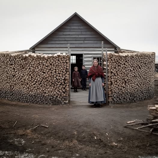 The structure grew slowly, wrapping around the house like a protective shell. She left a narrow walkway between the outer wall and the house itself, just wide enough to move through and stack wood.