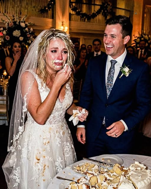 Gasps rippled through the room. My veil was crushed, buttercream smeared across my hair, my lashes stuck together with frosting. I couldn’t even open my eyes at first.