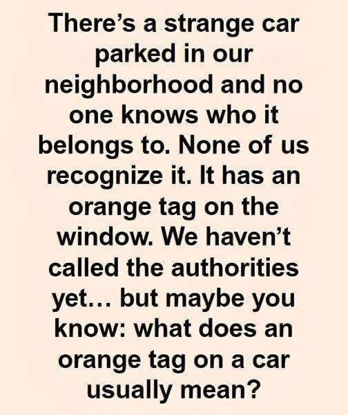 Eventually, someone decided to look into what that orange tag could mean. And what they found made everything click into place. It wasn’t random. It wasn’t harmless. That tag meant the vehicle had already been noticed—marked for a reason, flagged by people who had seen something the neighborhood hadn’t yet realized. The car wasn’t just sitting there by chance.