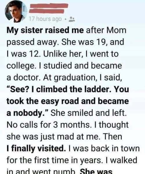 n the end, I learned that a person’s true greatness is not defined by what the world sees, but by what they do when no one is watching. My sister’s life was never measured by a resume or a high-paying job; it was defined by the quiet, extraordinary sacrifices she made so I could have choices.