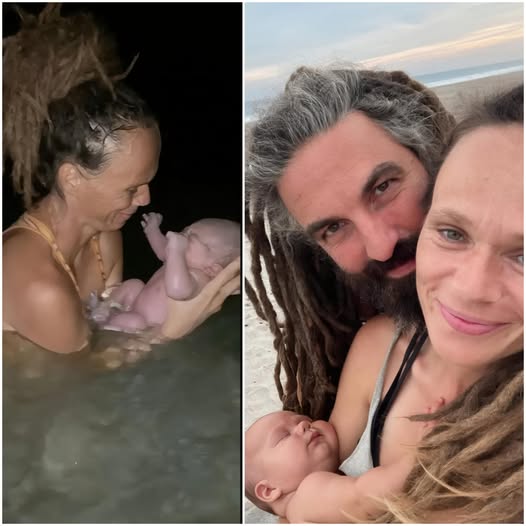 A mother of five has sparked global debate after giving birth to her baby in the sea in the early hours of the morning — without doctors, midwives, or medical equipment.